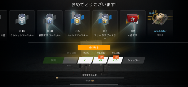 久しぶりにwotbやったら特大の復帰ボーナス貰った。※メイン垢のアドレスとパスワード忘れたんで、デスワゴンが強化された時にリロールした垢です。残クレフェリーチェ乗りになります😂