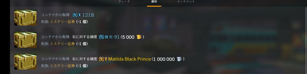 ミスボくじ1Gまで回してIが30個とIIが2個出て証券3枚出た。収支は‐1600Gで未所持tier10引けて勝利。