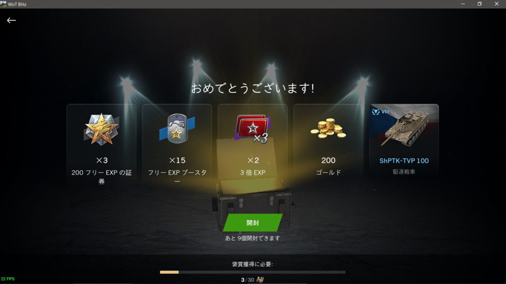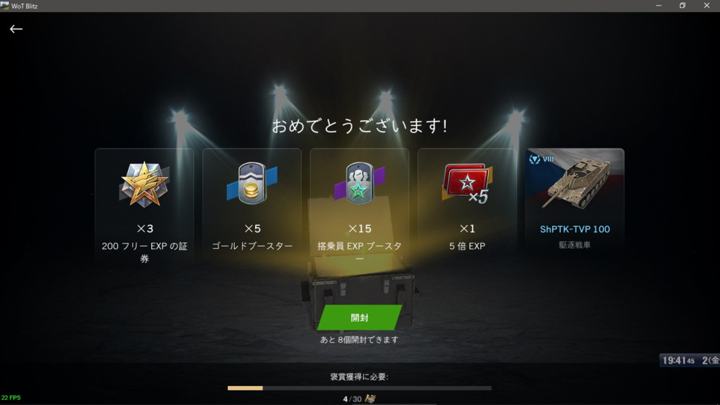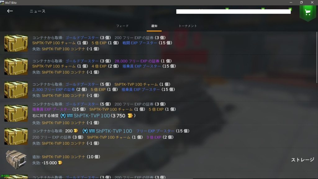 新車輌ShPTK-TVP 100コンテナ、-50%2個と-25%10個計12個購入、3、4個目で車輌獲得、出たゴールド11200G+車輌補償3750Gで支出610円と50Gで済みました。