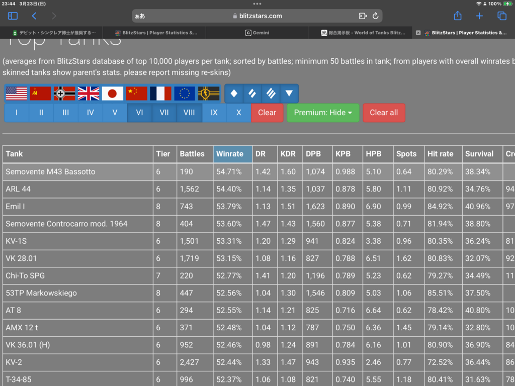プレ車除いてティア6-8では、バソットが確率的には有利