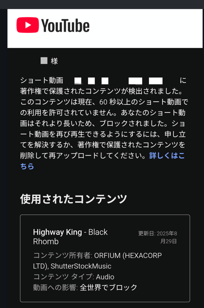 WGの方でも把握してて、とりあえずyoutube以外のSNSに投稿するか、音楽をyoutube提供の物に差し替えるかのどっちかを推奨するとのこと。