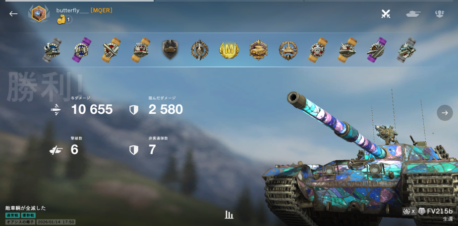 ティア4のチヘでMバ…それってBOT戦場だったんじゃない?(失礼)あと最初見たときただにやけてる文章だったから不気味だった。