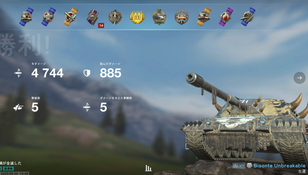 初めて乗ったら6キルはしたけどこのダメージ量でまさかのMバッジ笑笑
