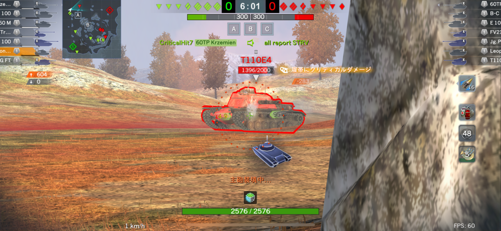 足が遅いので射撃後にバックで隠れようとしても、遅いので隠れきるまでに撃たれるし高速車輛だと2発撃ちこんでも接近されて手も足も出ずに撃破される!