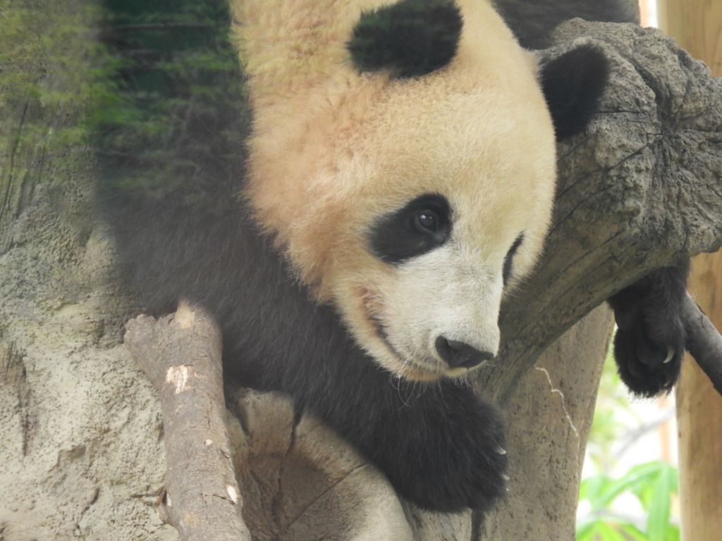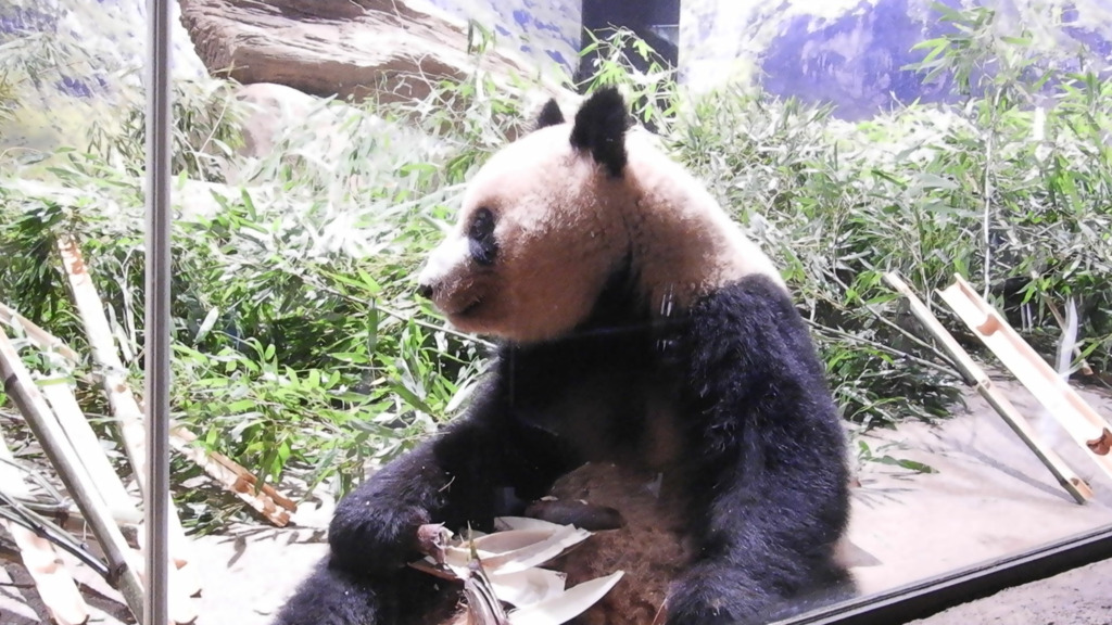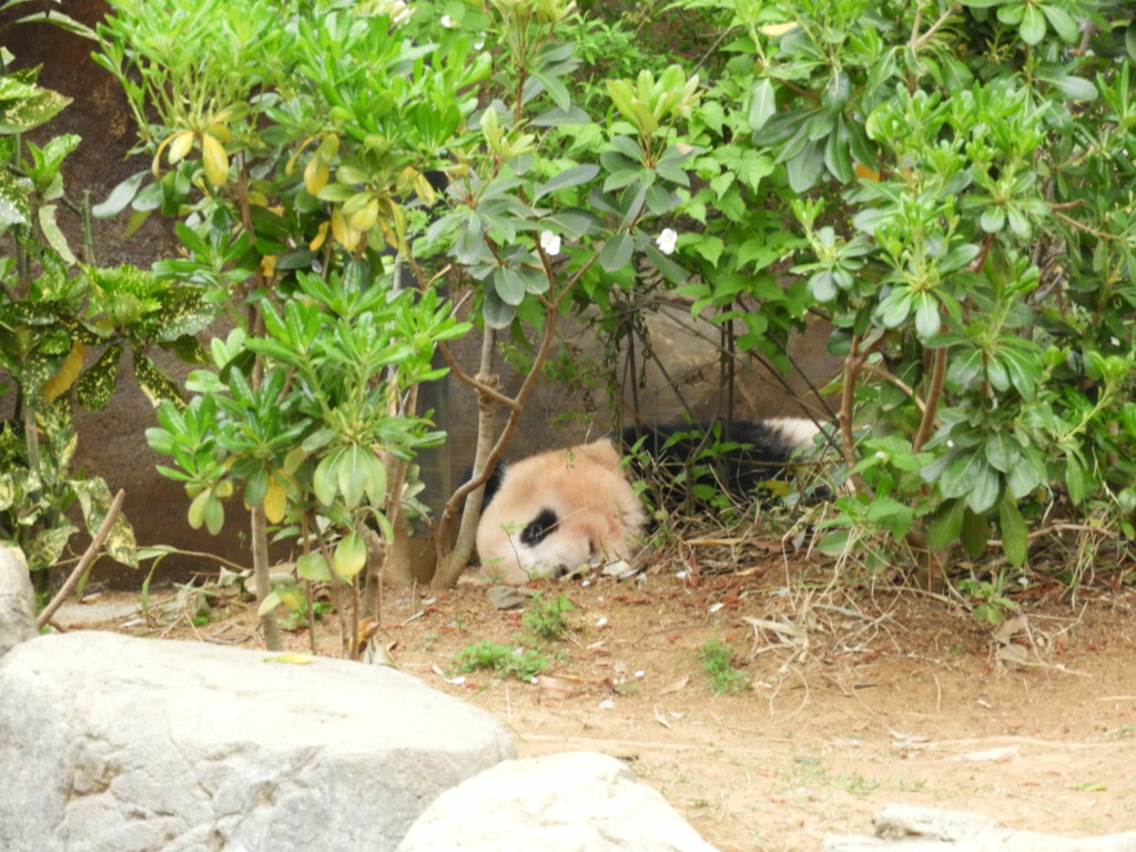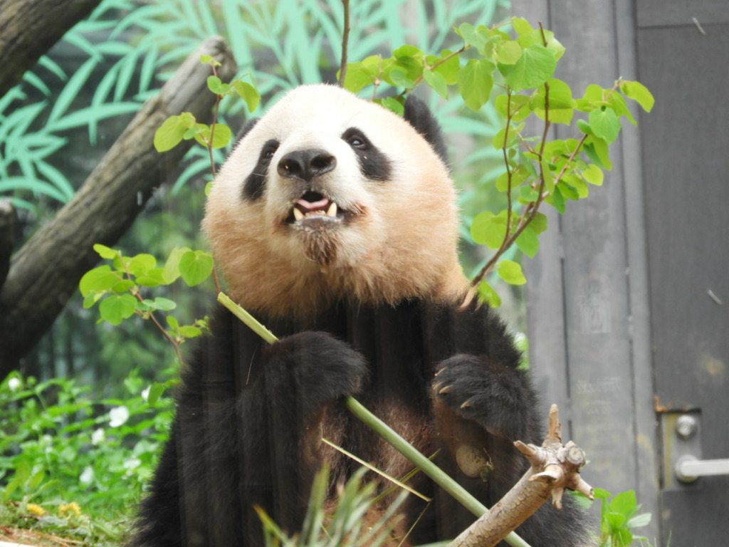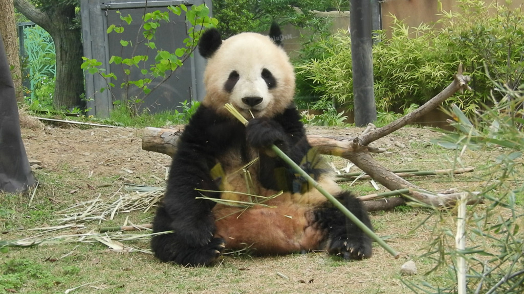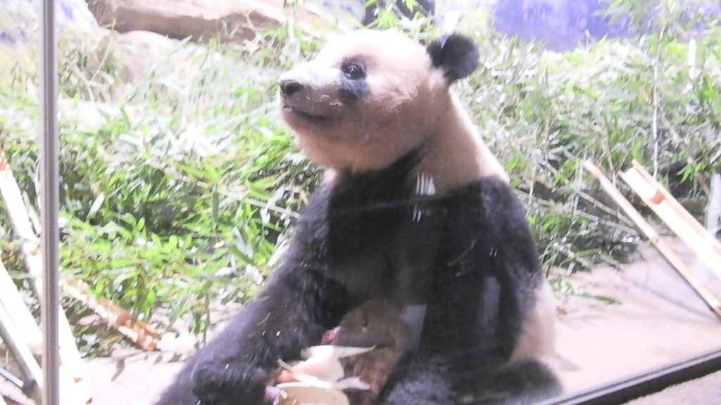 レイレイはこちらがそう思って見るからか、少し寂し気に見えました 筍を食べても満面の笑みにはならず、フリーズして何かを思っているような表情でした いつものシンシン譲りの食べっぷりにはまだ会えませんでした(今日は寝てる時間も長かった!)レイレイがんばれ 朝はお庭の真ん中にあった筍、右奥の植え込みに運んで食べてました