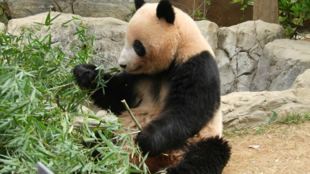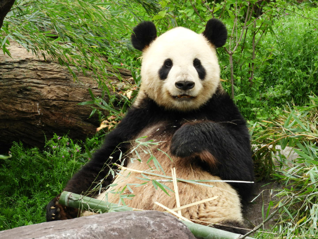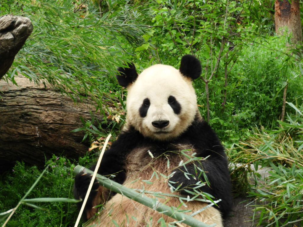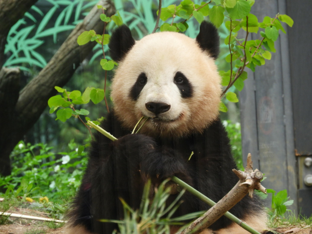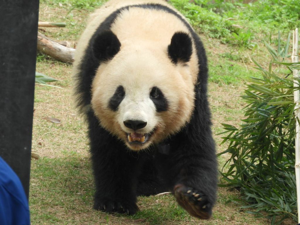 レイレイはこちらがそう思って見るからか、少し寂し気に見えました 筍を食べても満面の笑みにはならず、フリーズして何かを思っているような表情でした いつものシンシン譲りの食べっぷりにはまだ会えませんでした(今日は寝てる時間も長かった!)レイレイがんばれ 朝はお庭の真ん中にあった筍、右奥の植え込みに運んで食べてました