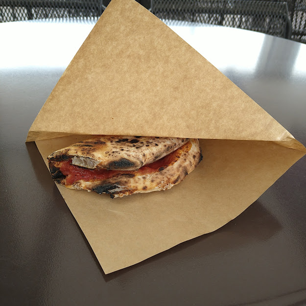 ワンハンド・マルゲリータ(600円)は薪窯で焼き立て熱々、生地はモッチリ、トマトソースも美味しく本格的なお味で美味しかったです😋