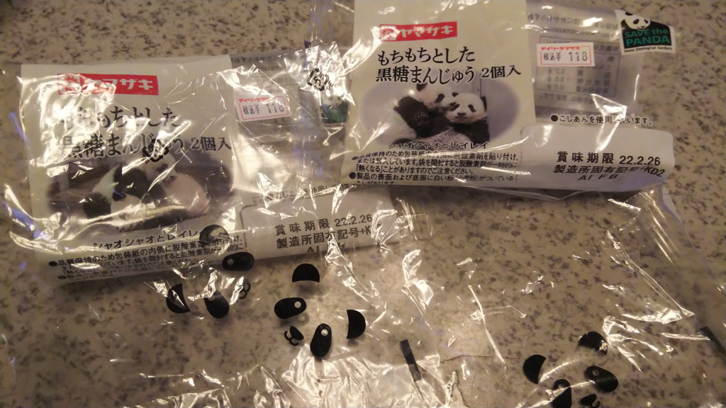 ただのお饅頭にパンダ顔のラップがされてるだけでしたw外パッケージに公式写真がプリントされてる袋です