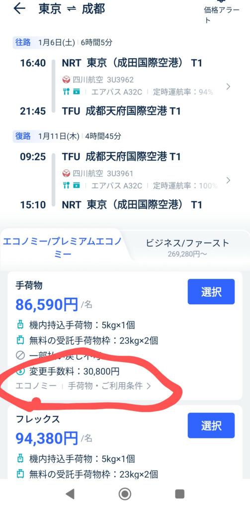PCで同じ条件でその画面見ると「乗継便」の項目は出てないなー