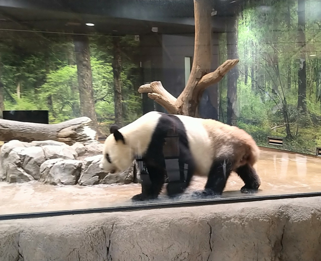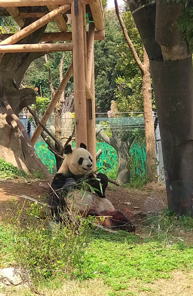 お昼ご飯もらったシンシン 隣の部屋ではお昼ご飯待ちのリーリーがうろうろしてた