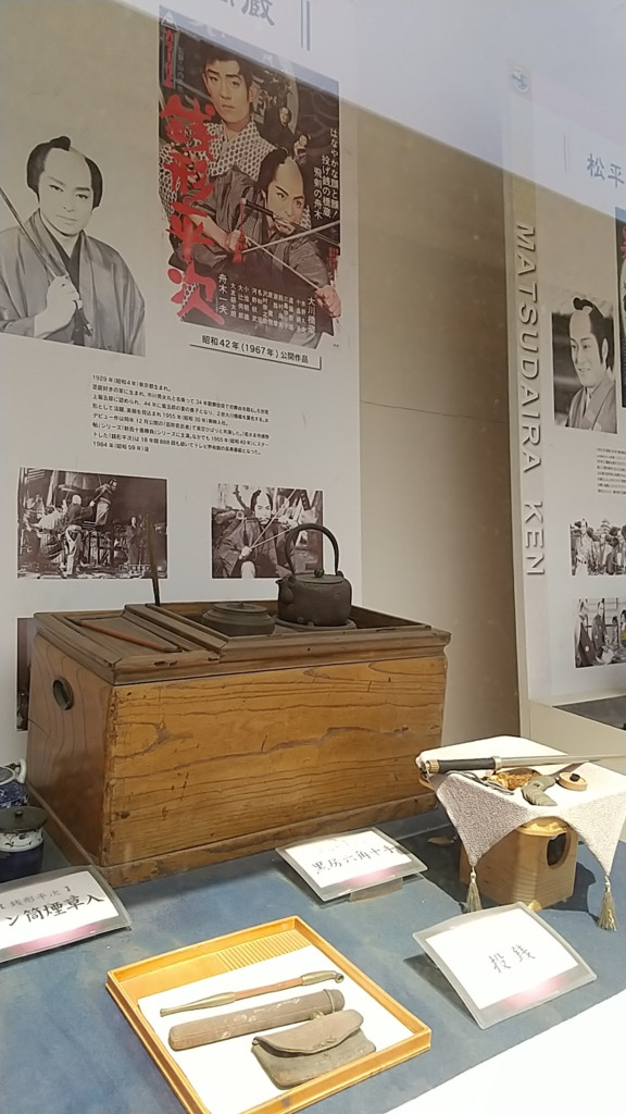 撮影所外の通路に展示されてたものと、橋蔵さんもお好みだったという「うずまさふたば」の豆大福です。