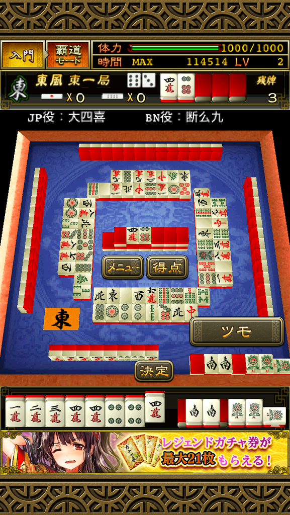 アプリのJP役とかいう制度のせいで四暗刻と緑一色覚えた