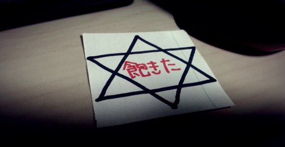 5㎝×5㎝の正方形の紙にできるだけ大きく六芒星を書きその真ん中に飽きたって書く
