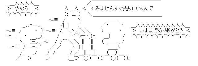 ─フルーチェひとりで作れるもん♪ (`・ω・) ζζ / o― ===、 しーJ | ̄ ̄ ̄| ─もうなんでも出来るんだもん♪ ___ . |___| ( ´・ω・) / ∞ ξ しー-J ξ ξ グラグラ .⊂二二二.⊃ | | | | .从从从从 (`・ω・),,,. /つ-o,;'"'゙';,/ O つヽ、ノ ┴ ,,,. \'"'゙';,/ ヽ、ノ ┴ ..∩ r(´・ω・`)ノ _ <できたでございまあす! └‐、 レ´`ヽ ヽ _ノ´` ( ( `ー <やきうのお兄ちゃんできたよ ( ´・ω・)つミ ,,. ( 二つ \'"'゙';,/ (゚)(゚)ミ \./ / ヽ、ノ つ ミ <おっすまんな ∪`J ┴ ⊂( )  ̄ `━━´ ̄\ (´・ω・) <・・・ 彡(^)(^) ( ) 彡 と パクー `u-u' (っ=.;:.:o):  ̄ ̄ `――´ ̄ ̄\ // ______ ,. -;‐;ァ; \ \ / ``丶、__l::::}ゝ i i 、`-┴'ノ ヽ |  ̄´ l l \ ̄ | ヽ (____人____) / \ | | / `ー'´ / (-)-) 彡 と (\ / ̄ ̄ ̄ ̄ ̄ ̄ ̄ ̄ ̄ ̄ ̄ ̄ /⌒ ヽ(・ω・`| | < おっ大丈夫か?大丈夫か? /| | | |ヽ ) \____________ ノ \\./| | く く\ \ / .\\ | | (__)(__) / /⌒\し'(ノ | 暴れんなよ・・・暴れんな・・・ \____ ______/ V (゚)(゚)ミ / ̄ ̄ ̄ ̄ ̄ ̄ ̄ ̄ ̄ ̄ ̄ ノ ミ <先輩!?何してるんですか! (´・ω・`) つ (、_ \___________ /⌒\⌒\( )つ・⌒_ , ) / |\ \/| ・ ⌒~ ノ ⊂ ) \__\|_____^ー一'ノ