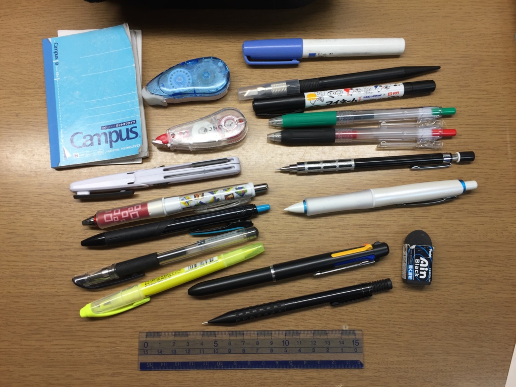 意識低い系わい、筆箱に クルトガ ドクターグリップ MONO消しゴム フリクションボールペン(3色のやつ) プラスチック定規 しか入ってない