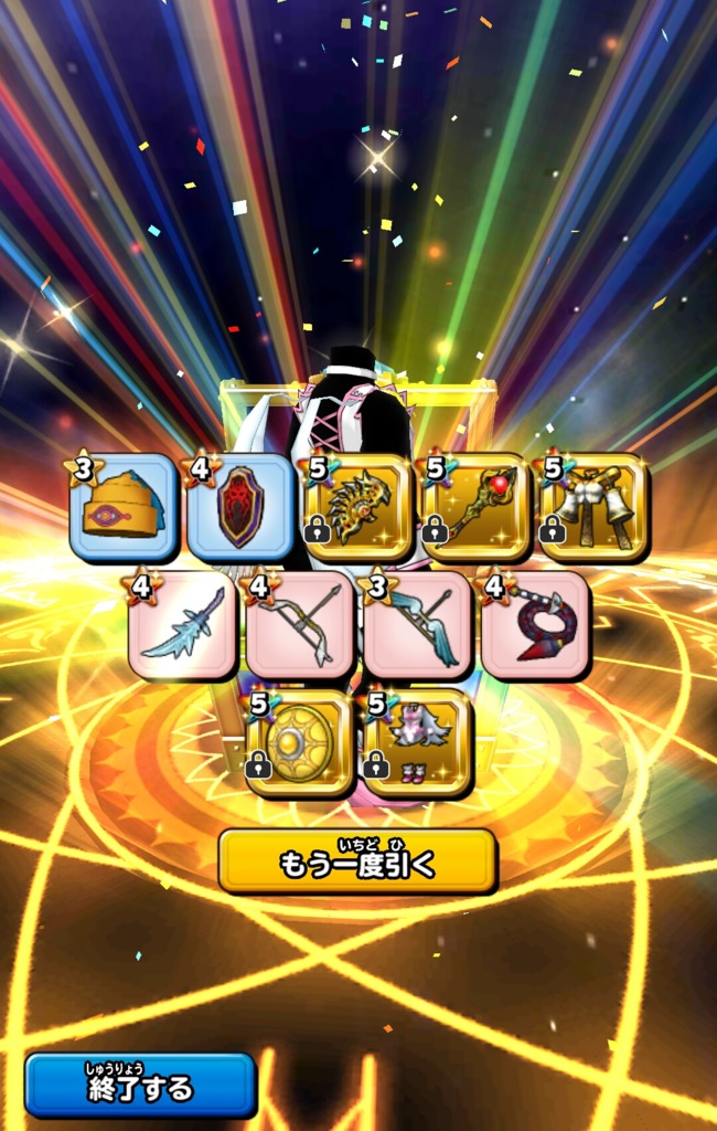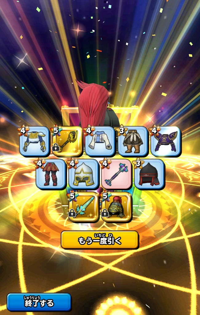 俺もルビス55連した 出たルビス装備は剣 扇 ローブ下 扇は嬉しいけど棍欲しかった…