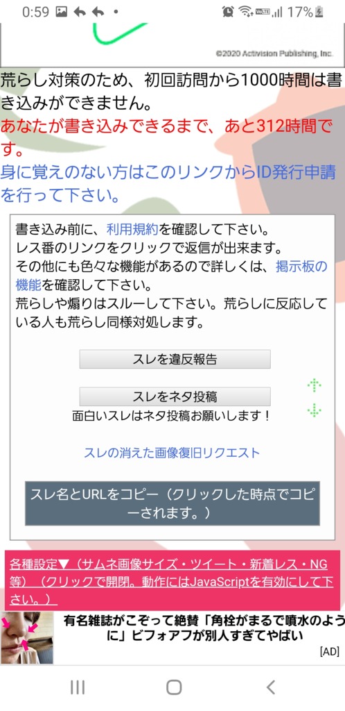 スレ建てとコメントできんくなった。書き込めるまであと320時間ですって出てくる