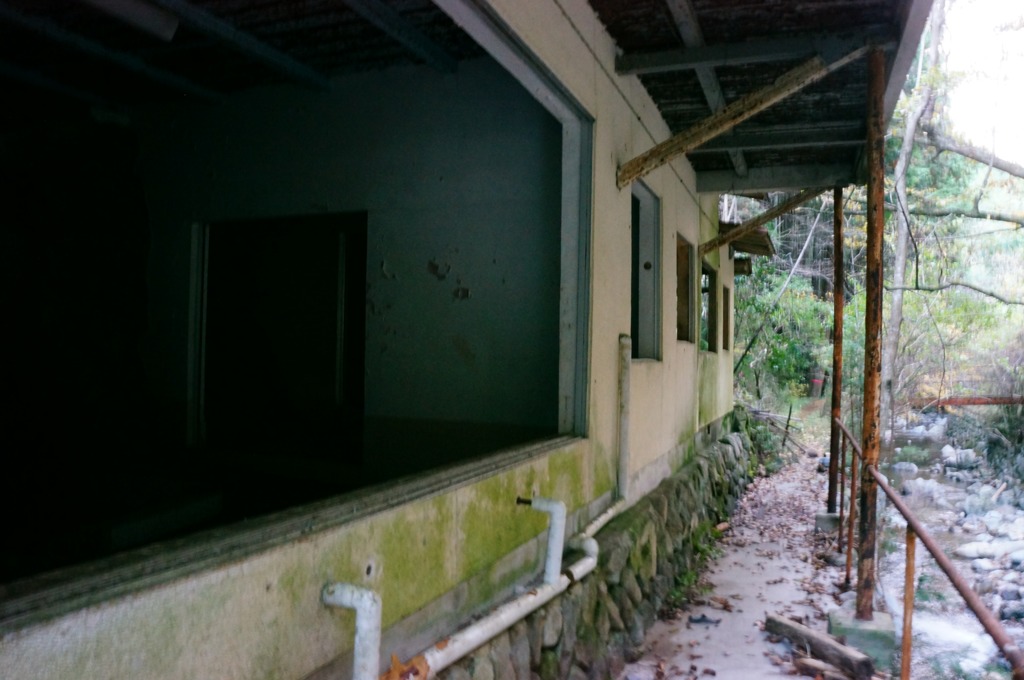 ↑のチェリーバンの先にある、清涼感ありすぎる橋を渡ると見えてくる小さな料亭の廃墟