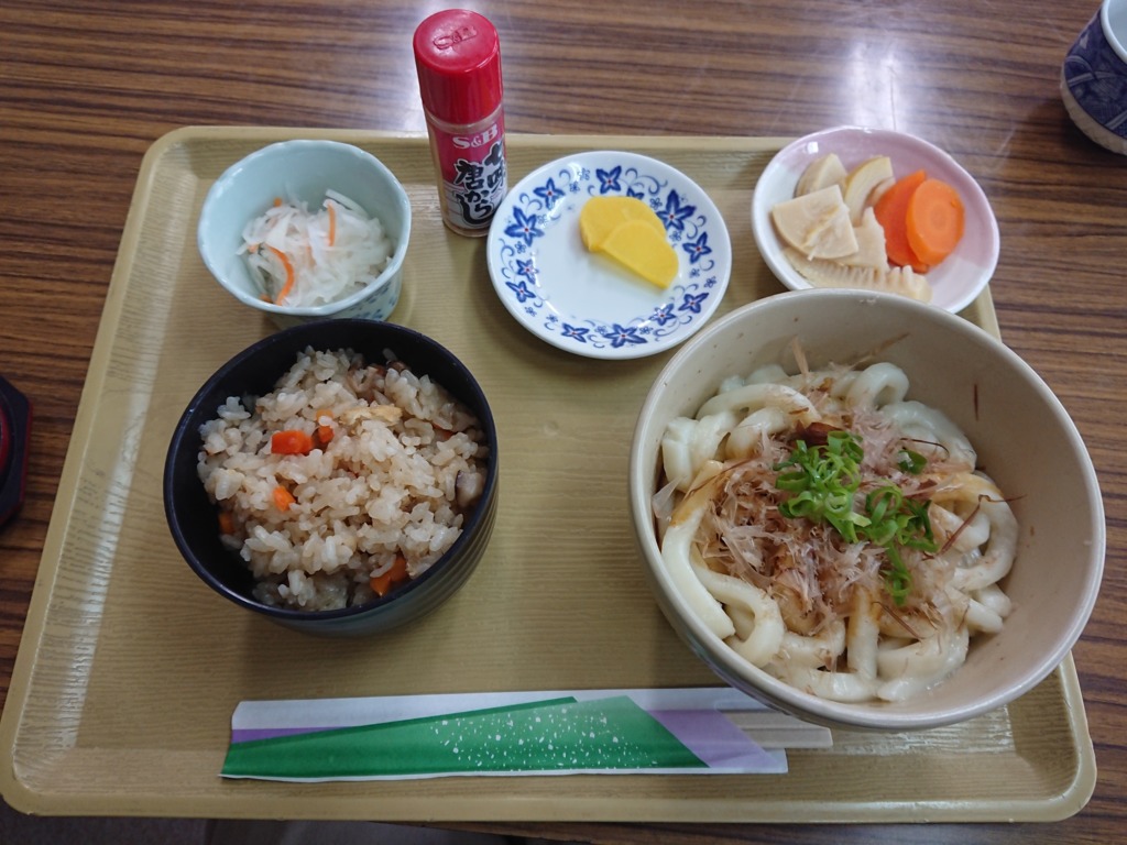 帰りに寄った廃校を再利用した温泉 教室の雰囲気そのままの食堂 料理もどこか給食っぽい、伊勢うどん美味しかったー こういう廃墟利用もいいなぁ