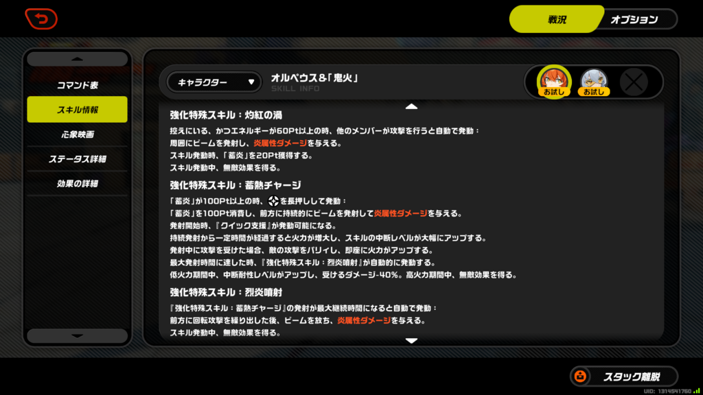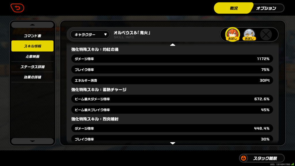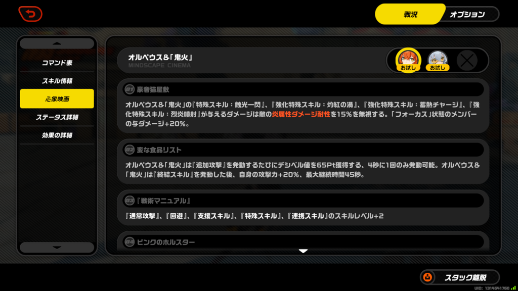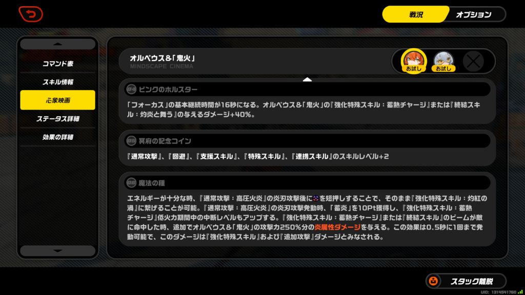 ひとまず心象映画と重要そうな特殊スキル・連携スキル周りの画像