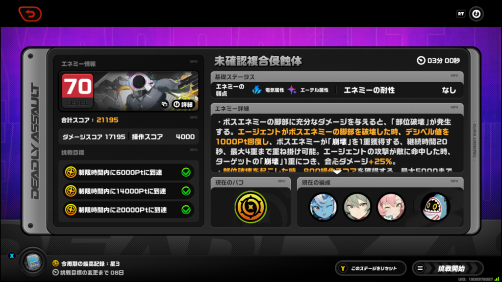 ぶっちゃー君サンドバッグにしてやってるけど、本当操作難しくてスコア30000前後から全く上がらない、上手い人らの動画見てると1分後半にはスコア20000近く叩きだしてループ状態にしてるから、全体的な火力が全く足りてないのかな?キャラステータス的には育成完了に近いから壁はこえれるハズなんですが。