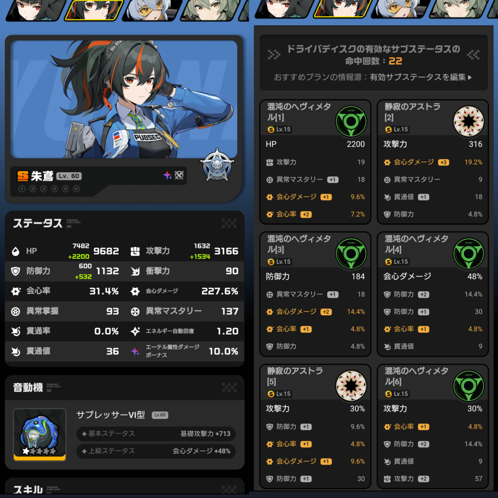 うちはどんなんだっけ?と思ったら攻撃3248/率41/ダメ229.2だった。ディスクは折枝2ヘヴィ4。ただ5番攻撃なのよね…