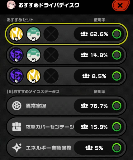 ゲーム内の統計見ると、やっぱりみんな雅実装に向けて準備してるっぽいね。前見たときは霹靂ユーザーやディスク6が攻撃%の人がもっと多かった気がする。